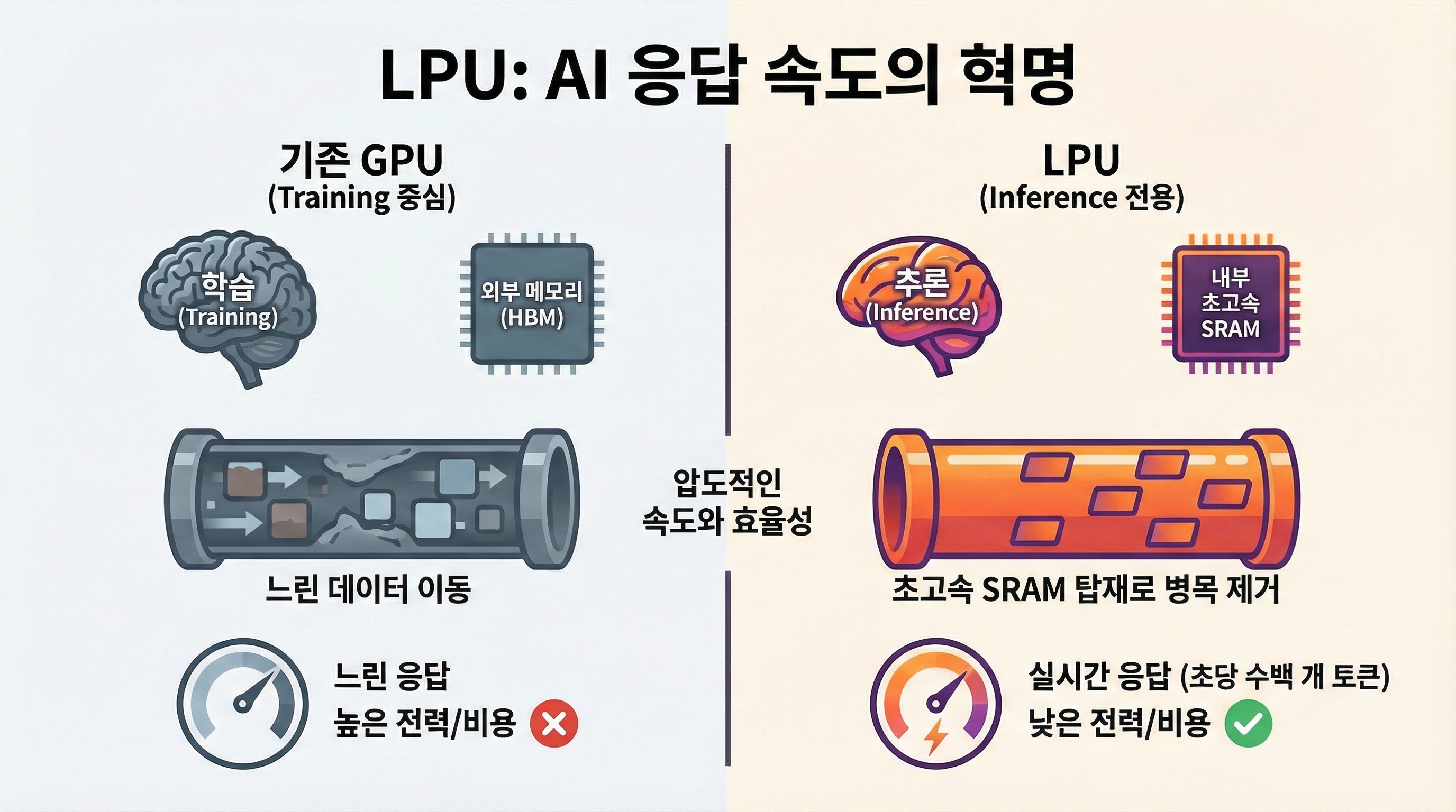 | 순차적 처리 최적화 | LLM의 특성인 '다음 단어 예측'의 순차적 연산에 특화되어 병목 현상이 없습니다. |