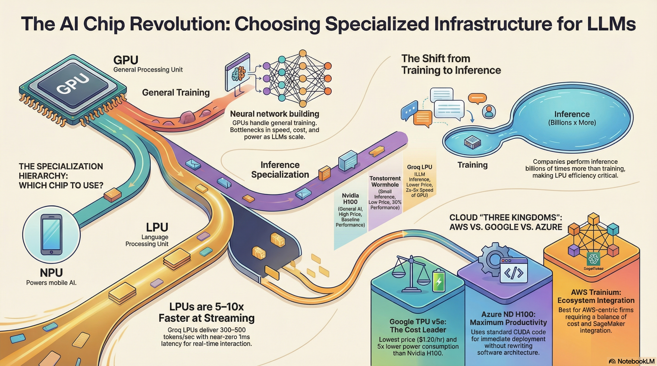 AI 모델의 성격이 고도화되면서 모든 연산을 GPU 하나로 처리하던 시대에서, 학습(Training)과 추론(Inference)에 각각 특화된 '전용 칩'의 시대로 진화하고 있습니다.
