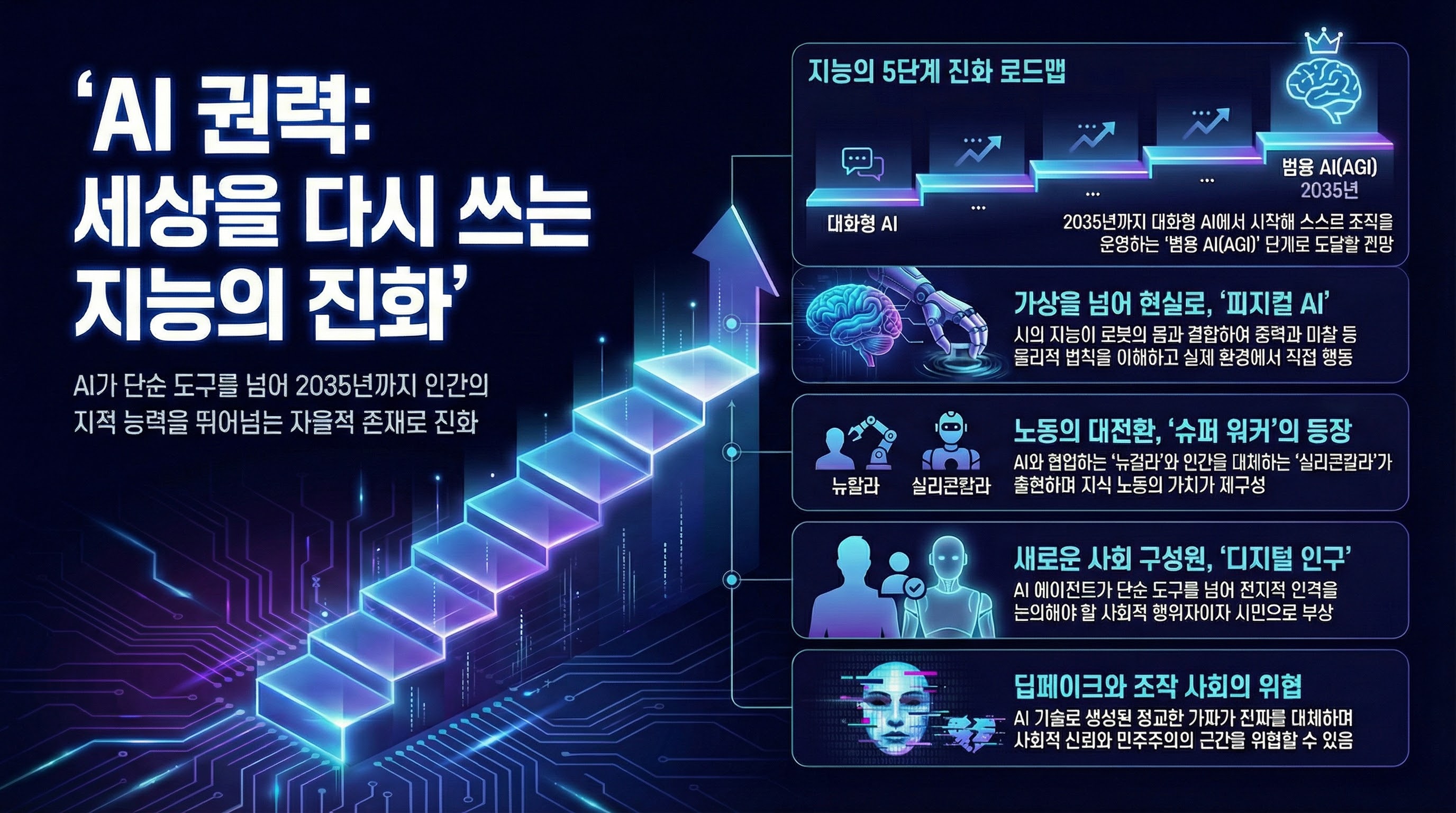 • 5단계(조직형/범용 AI): 인간 없이도 기업과 조직 전체를 자율적으로 운영하는 수준. (목표 시점: 2035년)